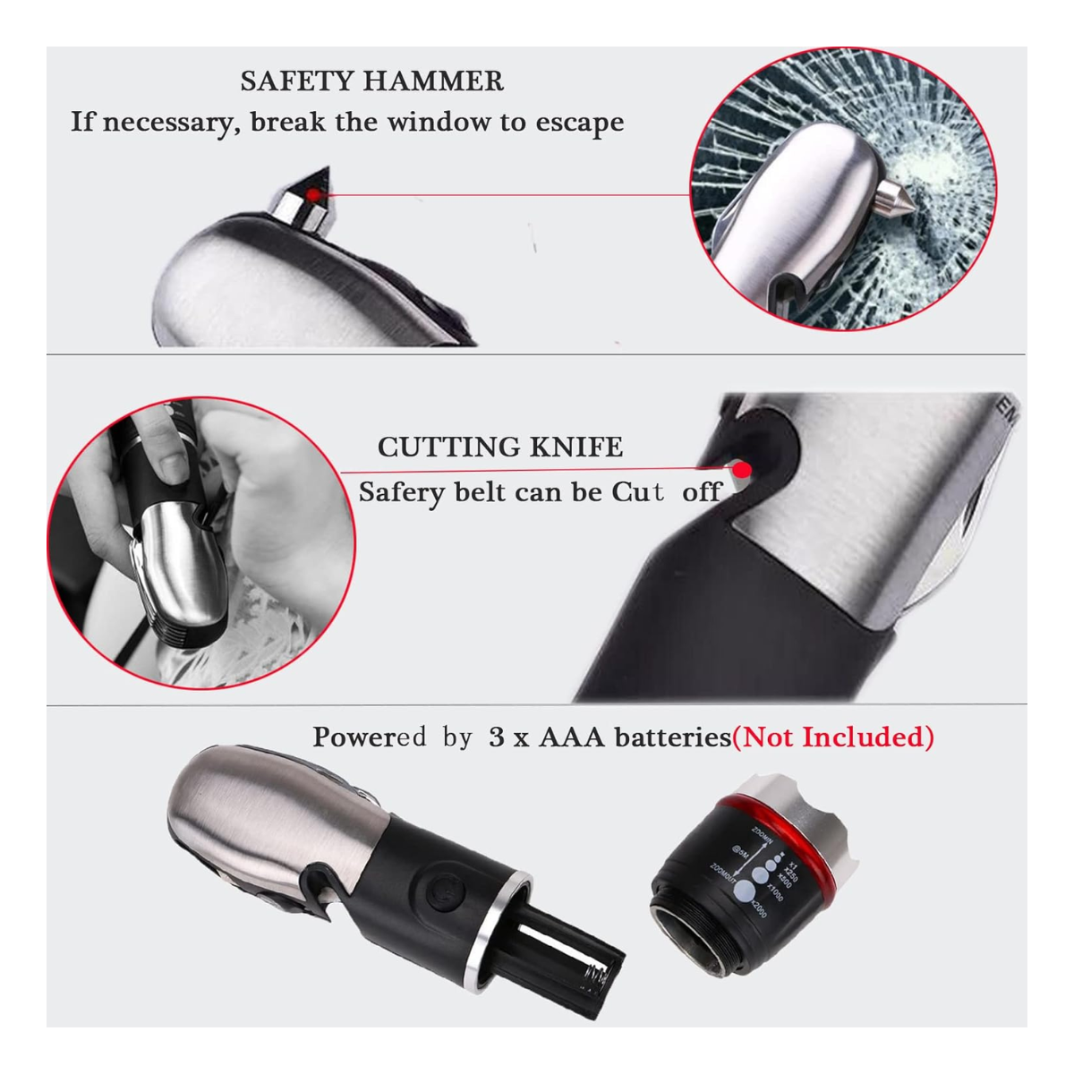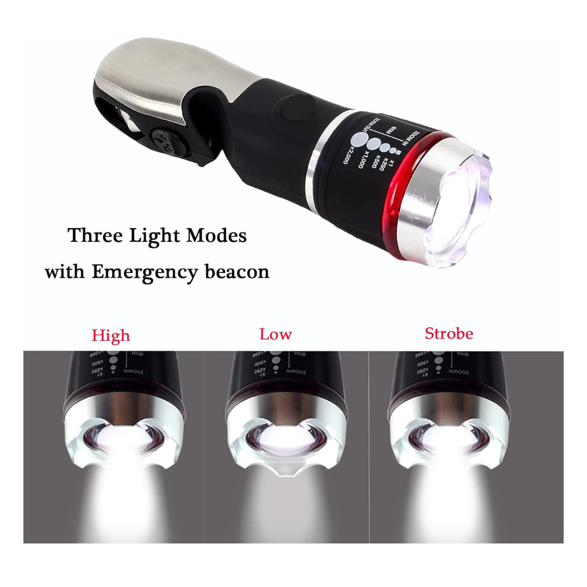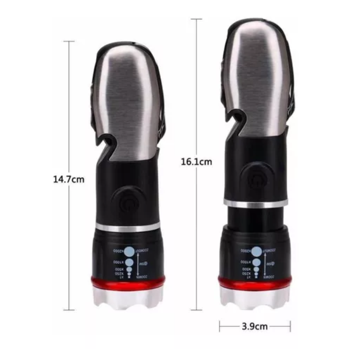 Cuenta con 5 modos de iluminación (luz XPE, alta COB, baja COB, roja fija y estroboscópica roja) para adaptarse a cualquier situación, desde apagones en casa hasta emergencias en carretera o noches de camping. Funciona con 3 pilas AA (no incluidas) y está diseñada para resistir golpes y agua, garantizando confiabilidad en todo momento.